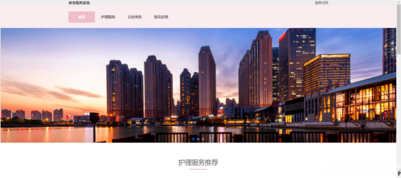 当人们打开系统的网址后,首先看到的就是首页界面。在这里,人们能够看到养老服务系统的导航条和公告资讯等。系统首页界面如图5-1所示: