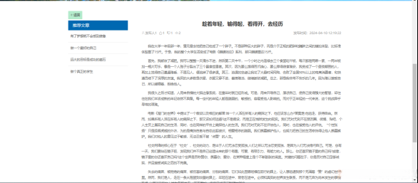 公告资讯:在公告资讯页面的输入栏中输入标题进行搜索,可以查看到公告资讯详细信息,并根据需要进行点赞或收藏等操作;公告资讯页面如图5-4所示: