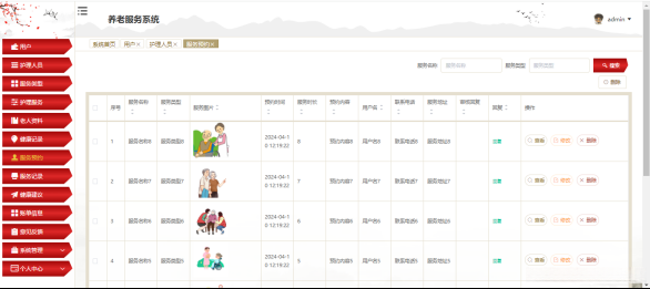 服务预约与管理 :提供多种养老服务的预约功能,如上门护理、康复指导、助餐服务等,并对预约状态进行跟踪和管理。
