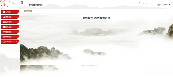 护理人员进入主页面,主要功能包括对老人资料,健康记录,服务预约,服务记录,健康建议,账单信息,个人中心等进行操作。护理人员主页面如图5-13所示: