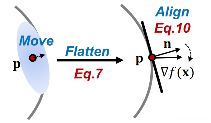 By introducing a scale regularizer, we ensure that 3D Gaussians are made extremely narrow through which their centers are pulled close to the surface.