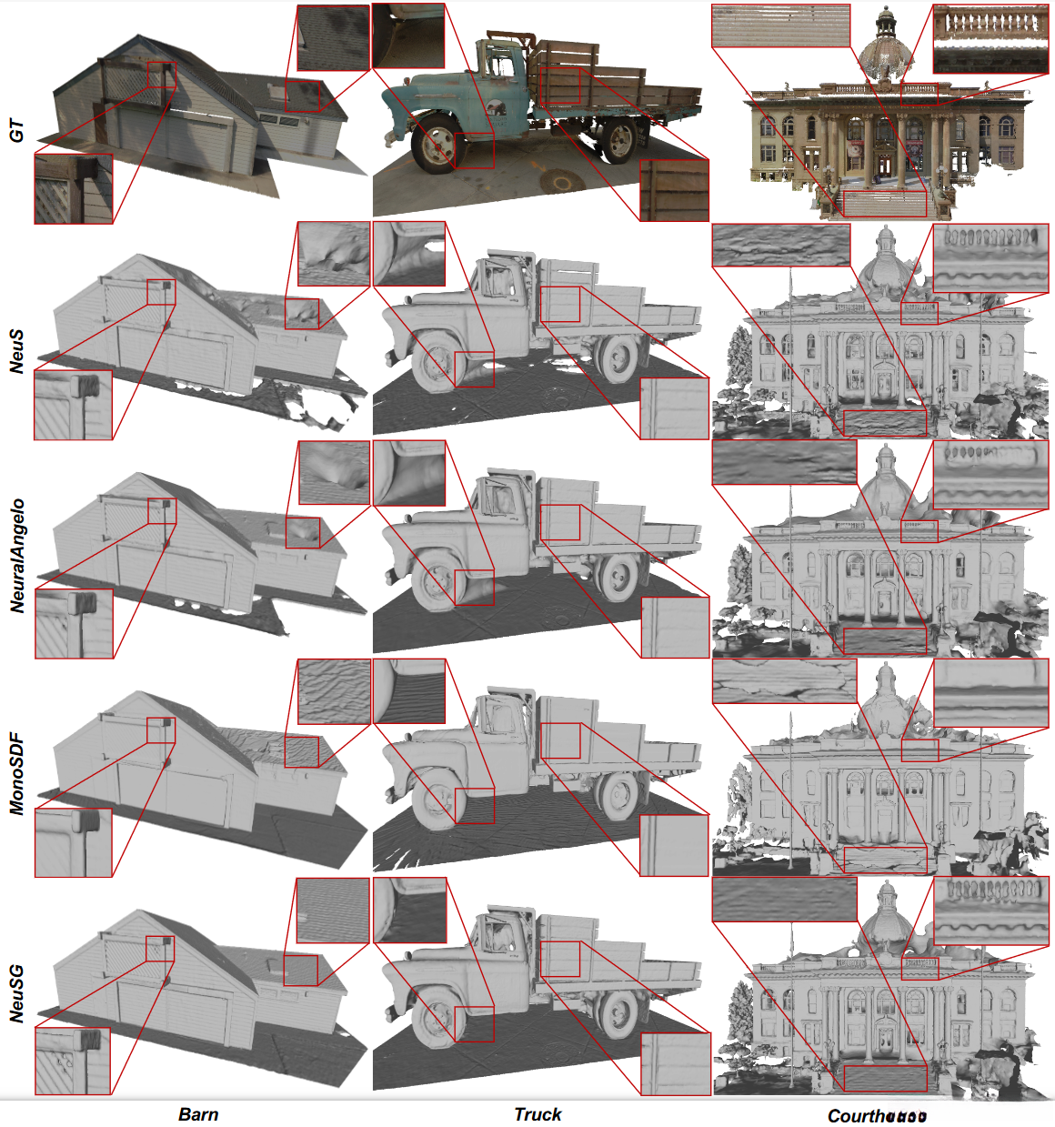 NeuSG demonstrates the capability to achieve fully realized and highly intricate surfaces, whereas baseline approaches typically lead to surfaces that either lack completeness or are contaminated by noise.