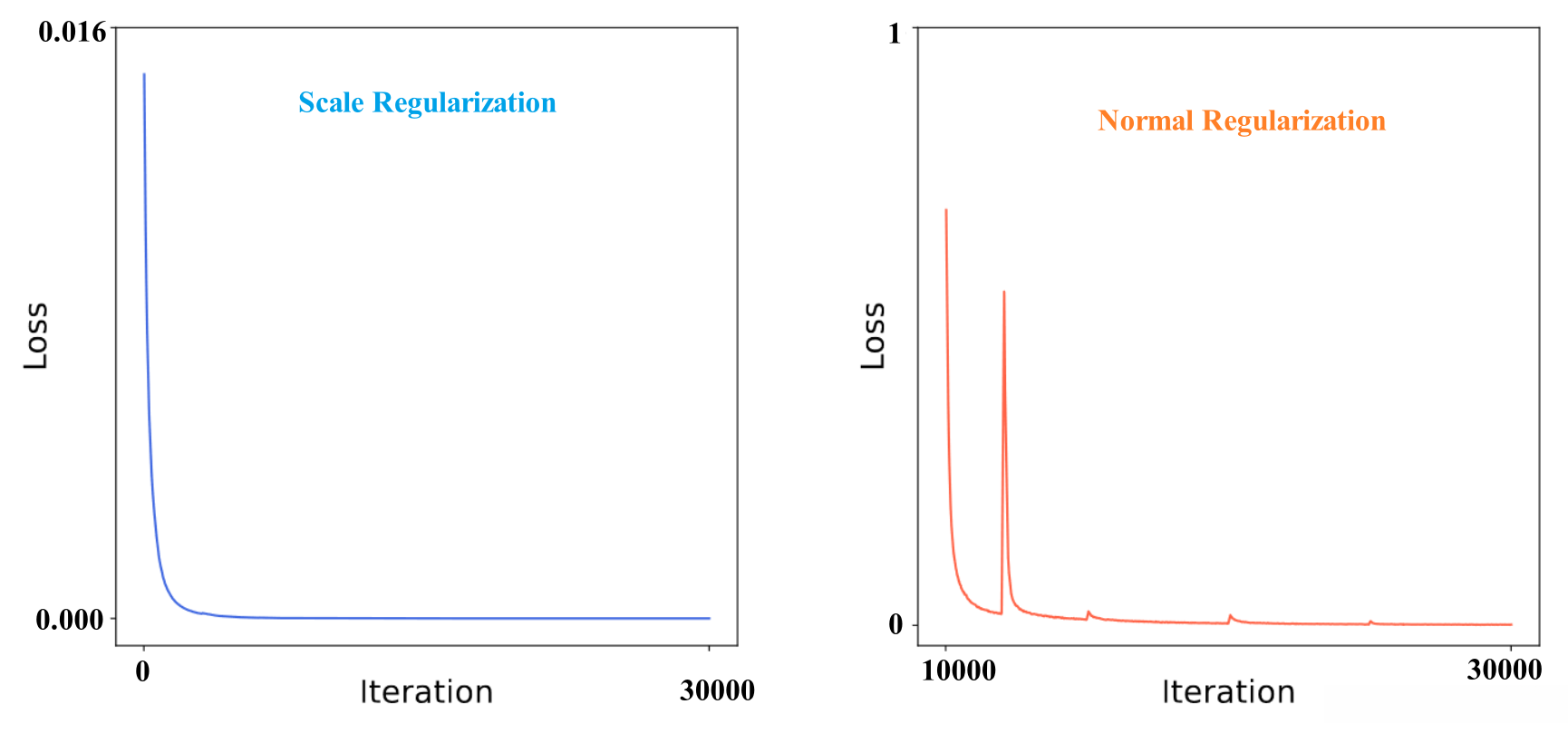This spatial scaling regularization technique is proposed to convert 3D Gaussians into extremely slender forms, thereby causing the points to be drawn closer to the surface.