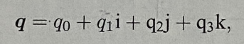 一个四元数q则包含一个实部与三个虚部: