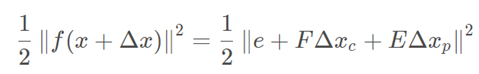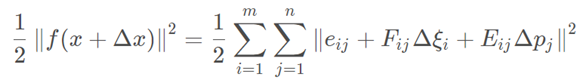 对于特征点位置p和m个位姿以及n个特征点,表示为: