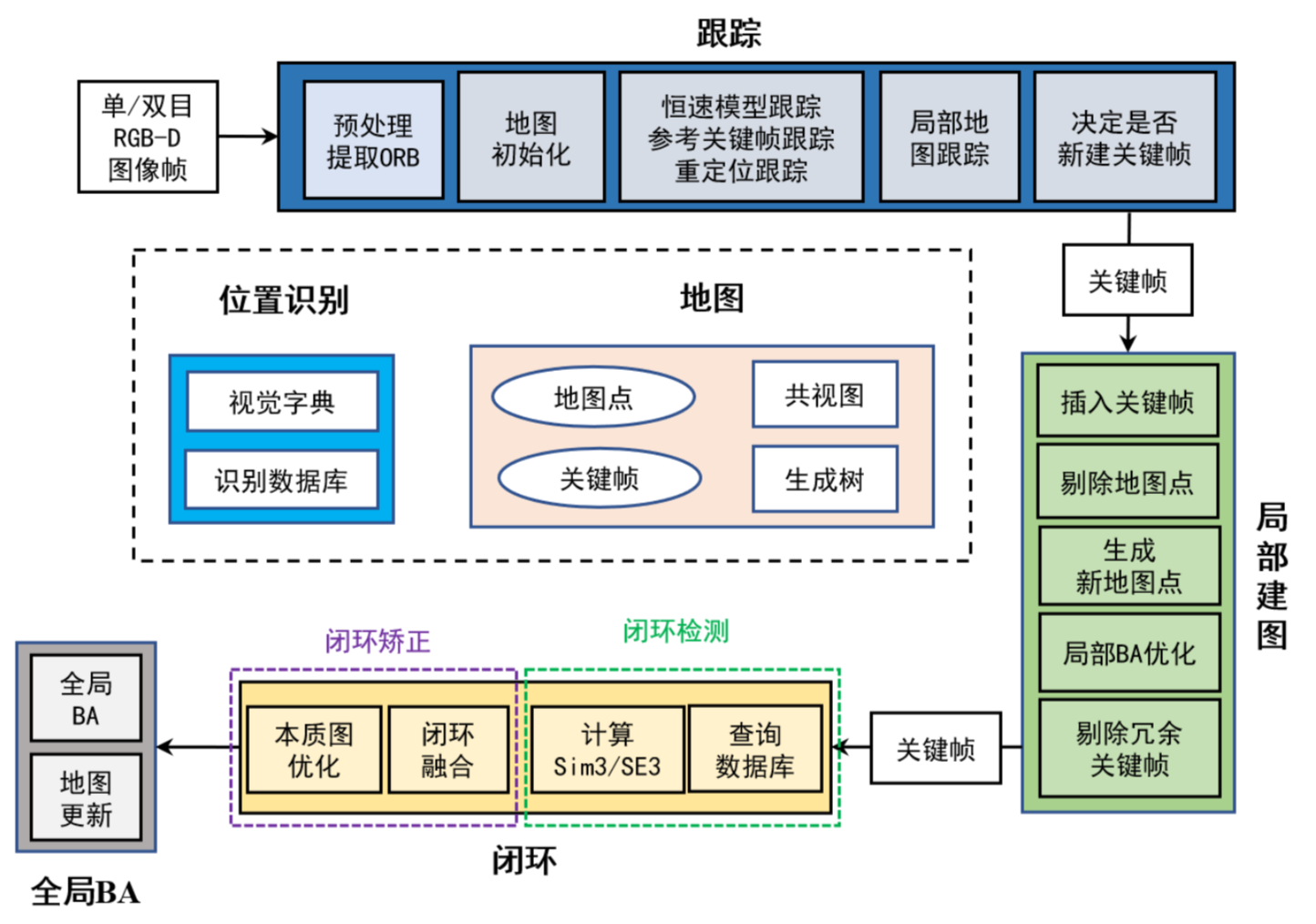ORB-SLAM2 算法框架如图所示