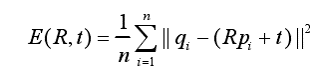 E(R,t) = \sum_{i=1}^{n} \| R \cdot p_i + t - q_i \|^2