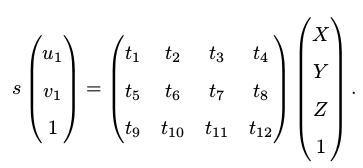 如果未知世界空间中的一个三维物体某一点P在image₁中的二维特征对应坐标为(x,y),那么该物体空间中的该三维空间位置必然满足上述几何关系条件(如前所述)**。