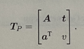 它的左上角为可逆矩阵A,右上角为平移t,左下角为缩放