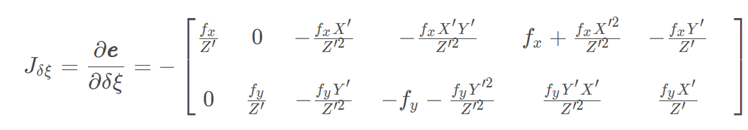 可以计算出误差对位姿和路标坐标的偏导: