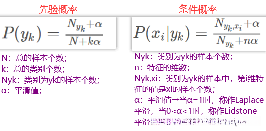 特征是离散,在计算先验概率P(yk) 和条件概率P(xi|yk)时,会做一些平滑处理;