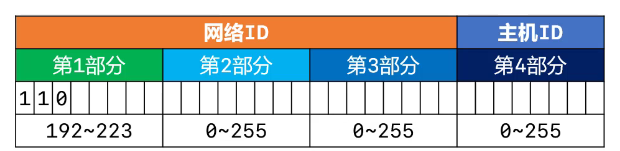 (3)C类地址: 默认子网掩码是255.255.255.0(最多有254个IP可用)