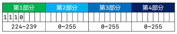 (4)D类地址: 以1110开头,没有子网掩码,用于多播(组播 )地址