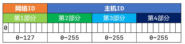IP地址由两部分组成 :网络标识(网络ID)、主机标识(主机ID)