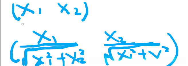 在图中,当向量x的二范式等于1时(即||x||=1),它表示二维空间中该向量在直角坐标系下的长度为1。当前两者的联系表现为它们的二范式均等于1的状态。满足余弦相似度与欧式距离等价性条件的模型设定是基于对所有样本进行L2正则化的优化框架。