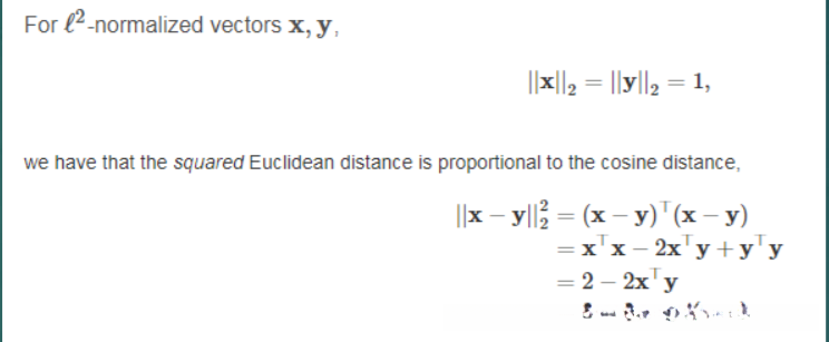 余弦距离和欧式距离的关系
