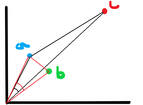 从欧式距离cb之间jul最短,从余弦距离a c之间距离最短