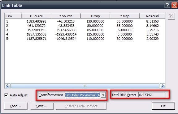 “Transformation”:该下拉按钮,转换的方法会随着控制点数量的增加而增加,一般选择Adjust即可满足要求。