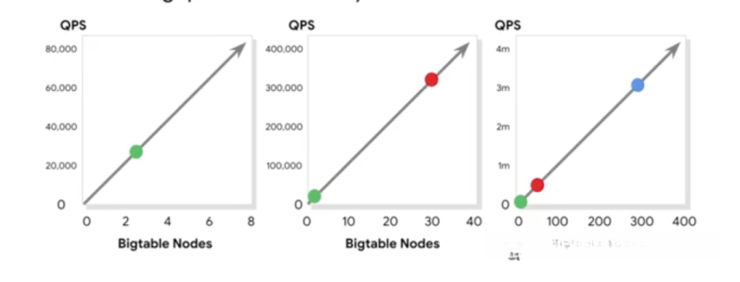 吞吐量可以随着Bigtable node节点数量线性扩缩