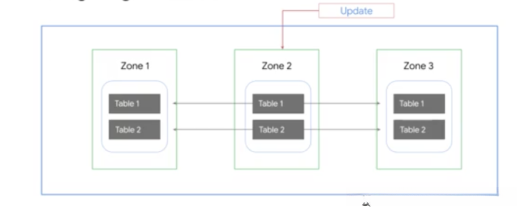 通过Google的全局光纤网络在多个Zone之间同步数据的更新