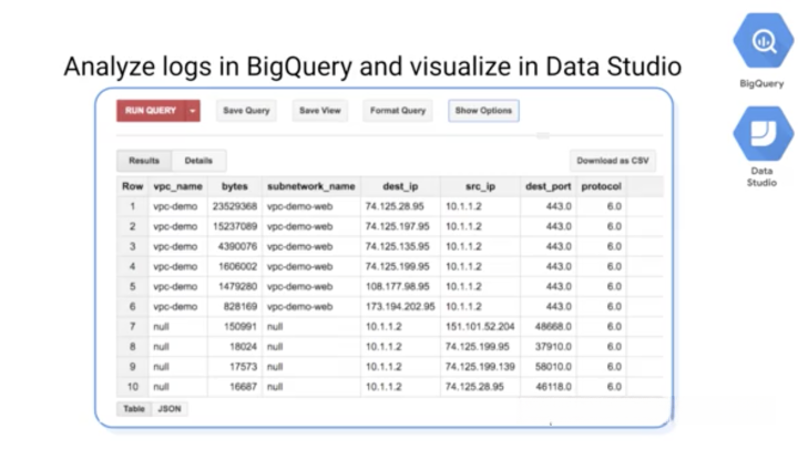 日志可以被导入到Cloud Storage,BigQuery and Cloud Pub/Sub。