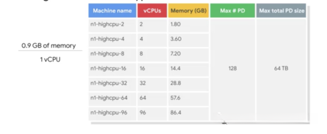 预定义机型按照1 vCPU对应的内存大小可分为: