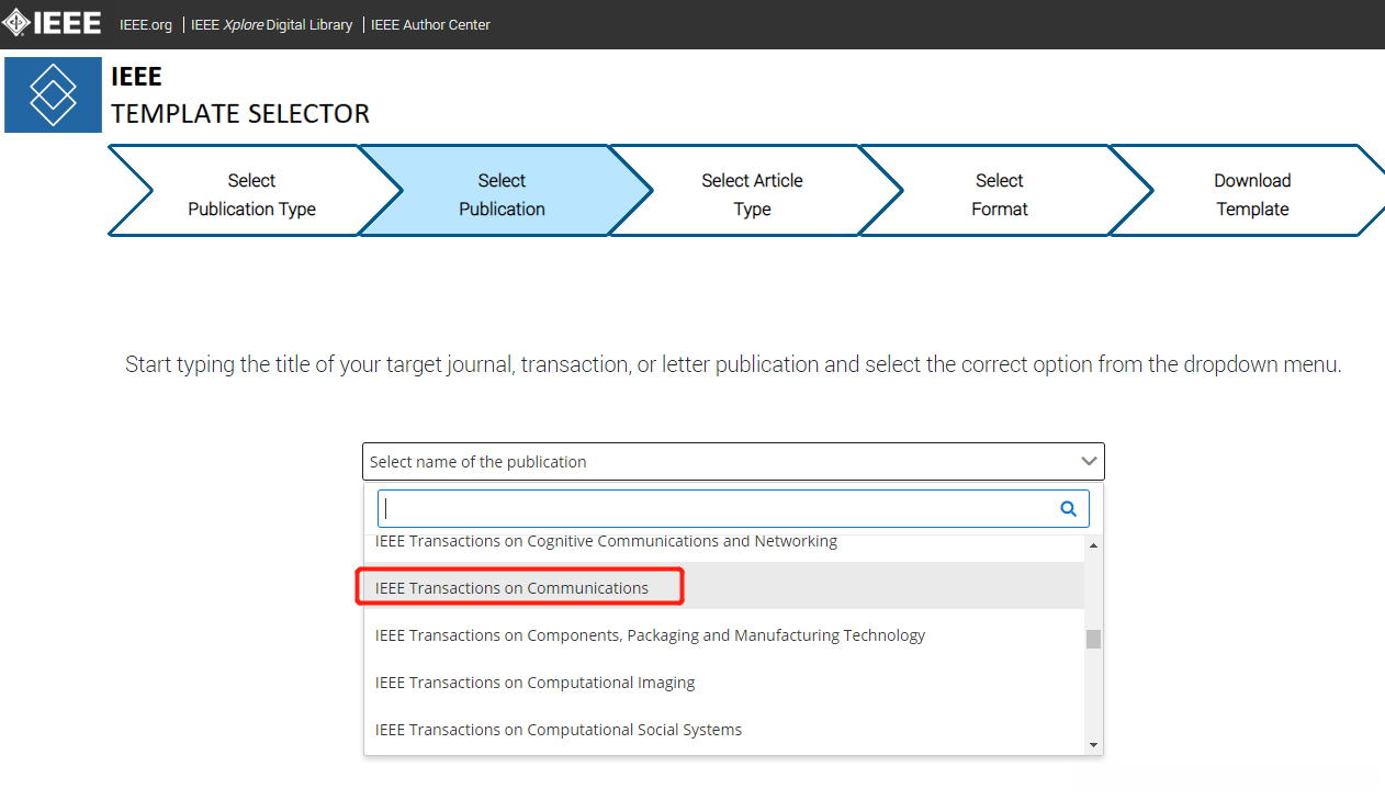 3)确定投稿目标期刊(例如:IEEE Transaction on Communications)
