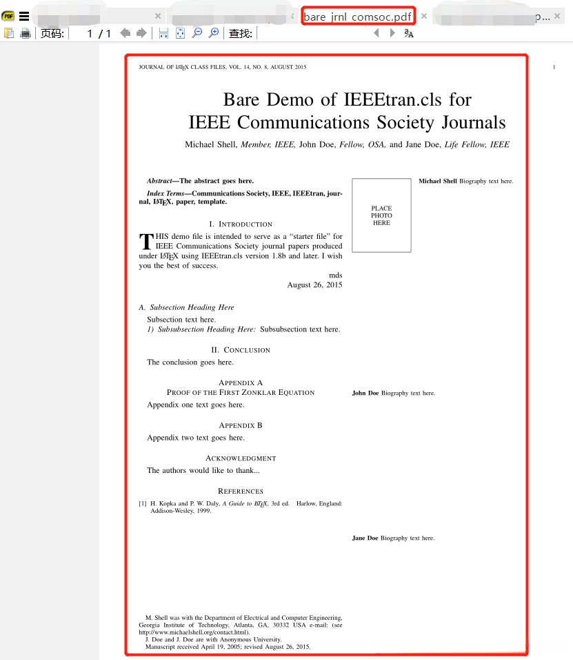 bare_jrnl_comsoc.tex文件编译后,效果如下:
