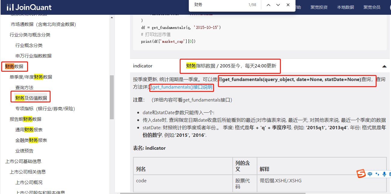 进joinquant官网,点击导航栏中本地数据下的python版api入口,