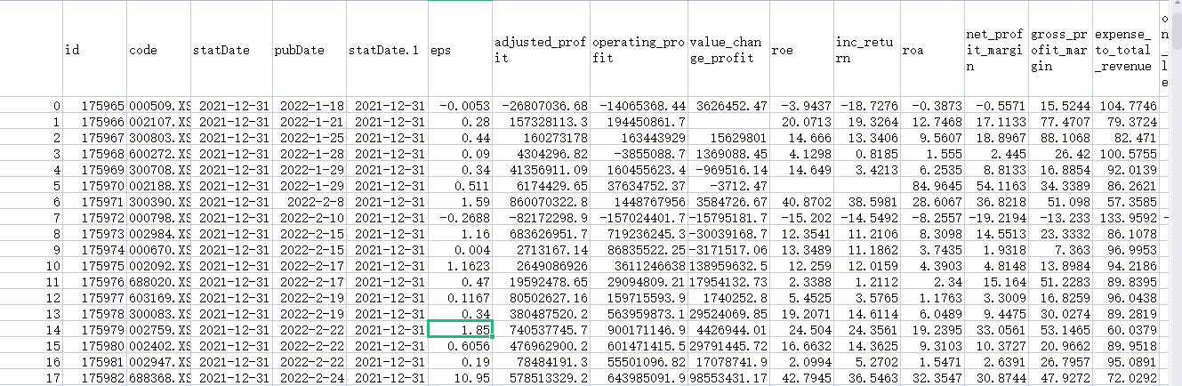 df_stocks.to_csv('E:/Python workspace/JQdataQuant/data/finance/finance_stocks_2022.csv')