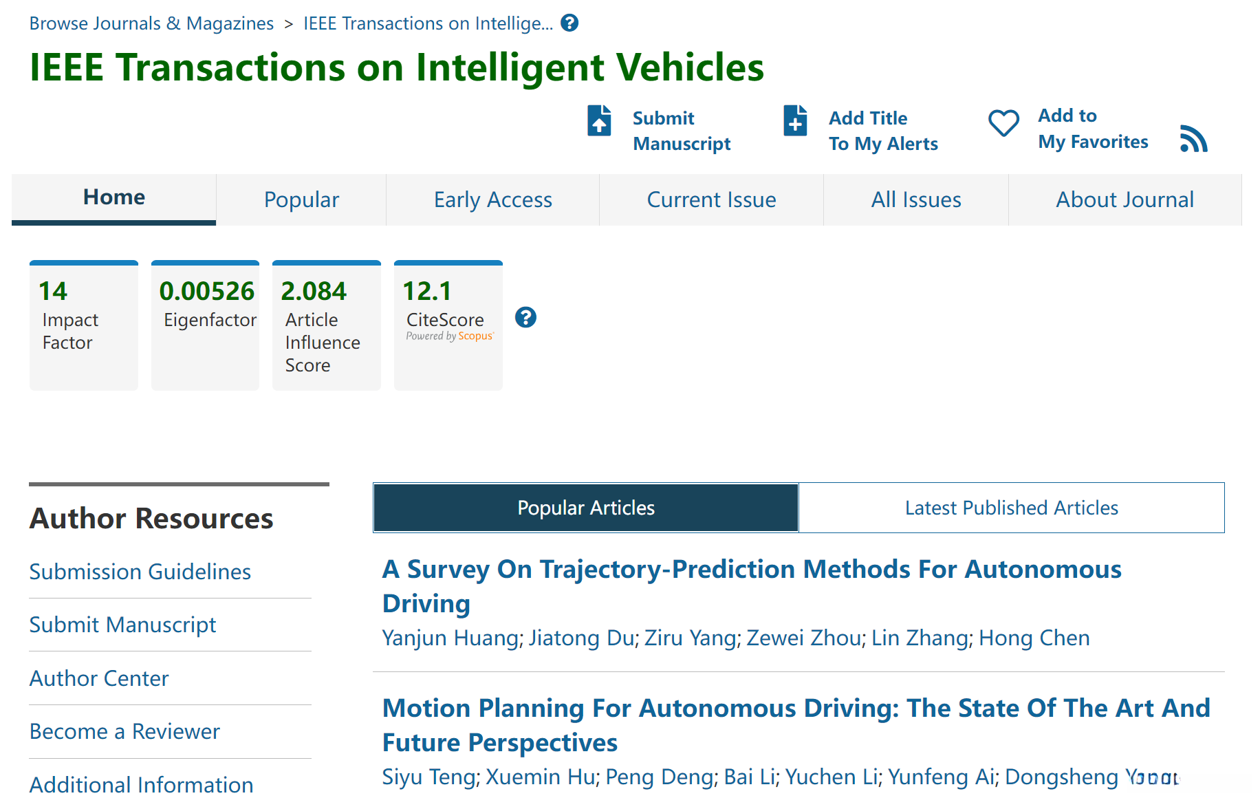 IEEE Transactions on Intelligent Vehicles 影响因子为14.0,在几区?2023-2024年投稿经验分享:IEEE Transactions on Intelligent Vehicles官网信息汇总:推荐审稿专家及编辑:审稿周期/时间:版面费用如何?中国作者投稿的文章修改意见