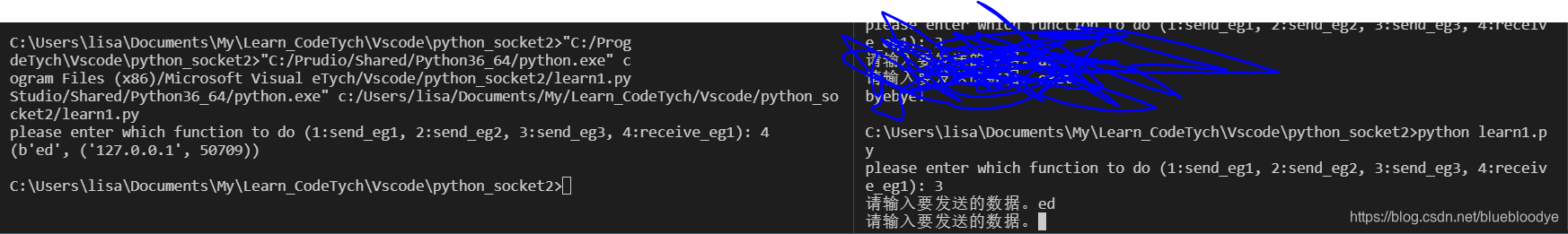 # 上述写法会出错,要用bytes的方式发送,故要在发送内容上加b