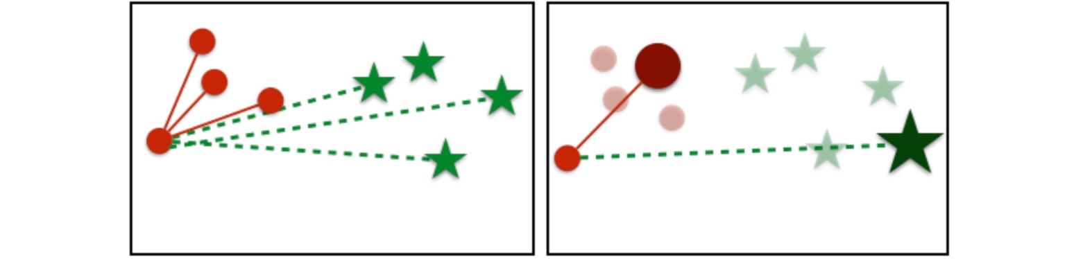 针对(Pair-based) 的度量损失,在一个批次中考察各组样例间的相互关联性时,应尽量缩小正样例间的距离并扩大负样例间的距离。这种关联性既可基于少数几个样例进行分析(局部视角),也可基于整个批次的所有样例展开研究(非局部视角)。