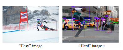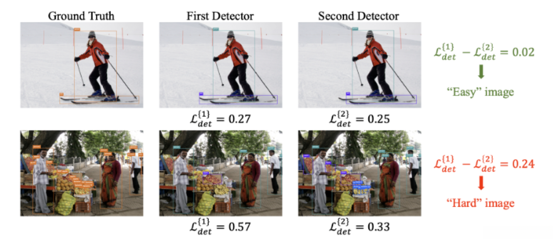使用第一级和第二级检测器的检测损失差异 Δ 衡量图像难度: