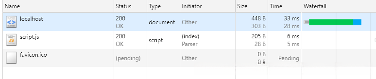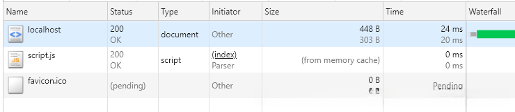 然后我们进行刷新浏览器,可以看到script.js的Size和Time如下所示: