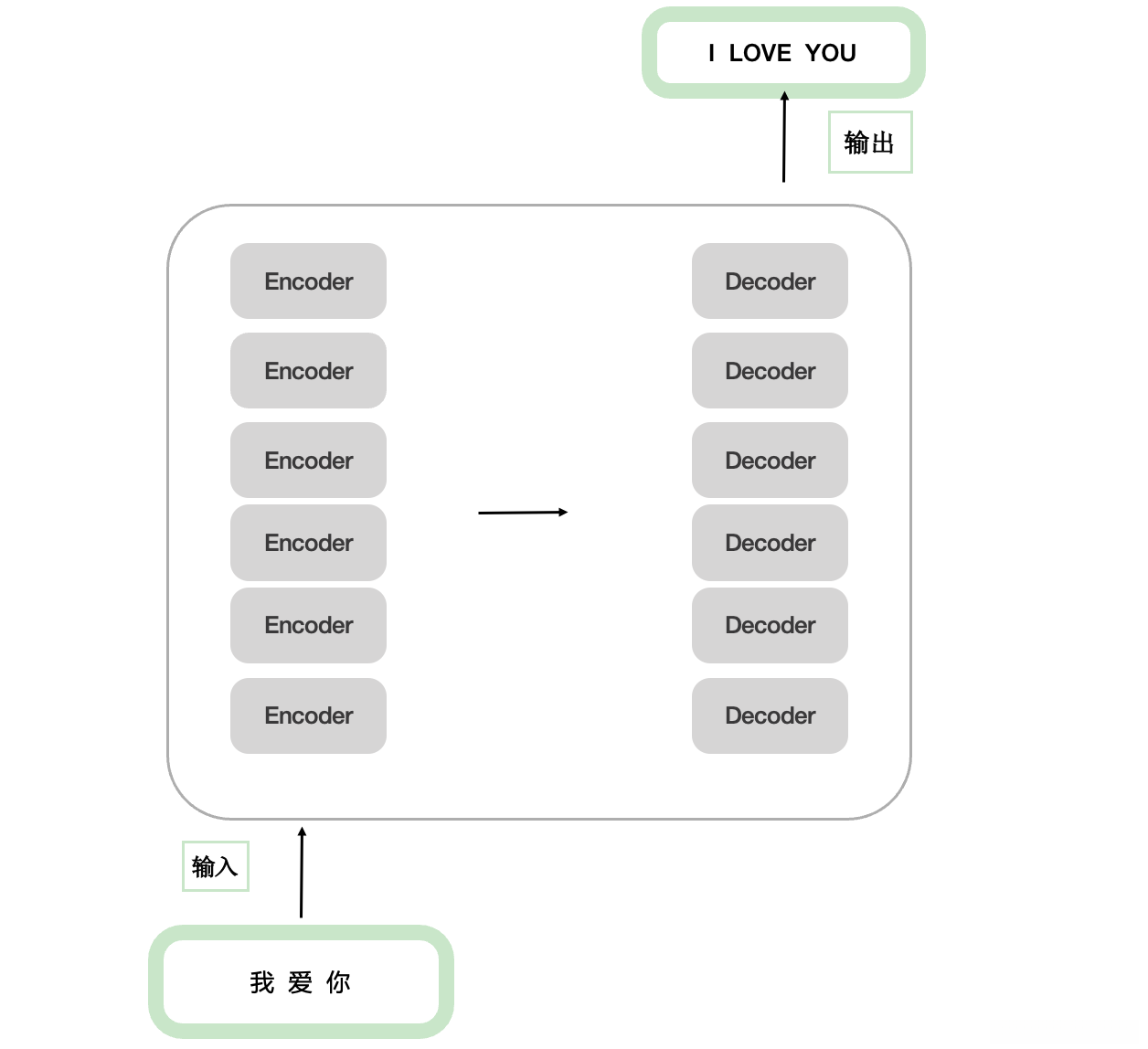 在编码器部分和解码器部分都采用了类似的架构设计,在编码器中同样地,在解码器中也是如此基于两层编码器与两层解码器组成的Transformer架构 ,其具体结构如图所示: