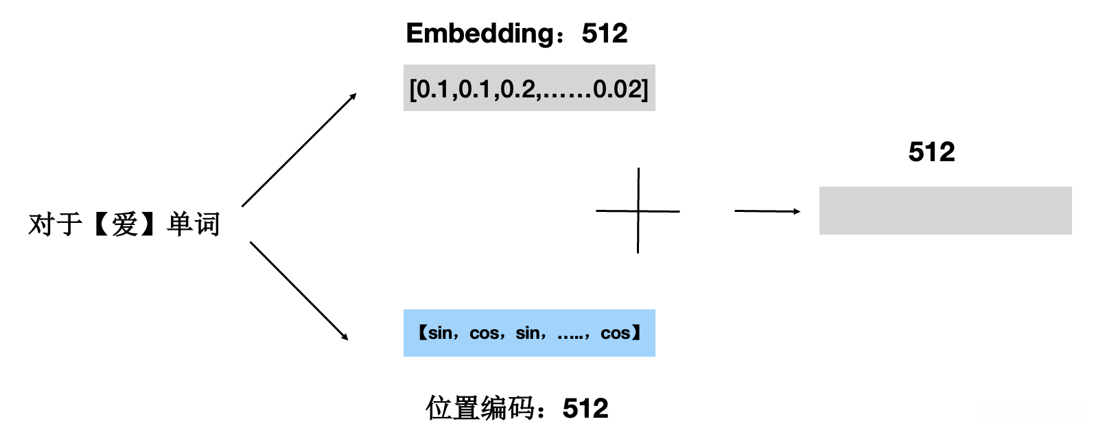 - 首先说输入部分 : 1. Embedding;2. 位置嵌入。 两者相加,如下图所示