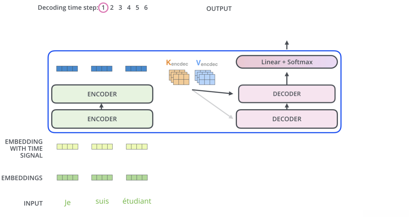 - 观察图形可以看到这是一个典型的多头注意力机制,请问其工作原理是什么?查看下图以了解其具体实现:每个Decoder与所有Encoder的输出进行交互。