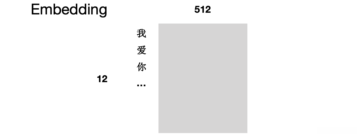 例如:输入为 我爱你......12个字。我们将每个字符编码为一个 512 维向量(与原论文一致) 。在构建过程中,可以选择使用 Word2Vec 算法或者随机初始化的方式(当数据规模极大时两者区别微乎其微)。通常情况下建议优先考虑 Word2Vec 算法。因此生成的所有词向量均具有 512 维特征。