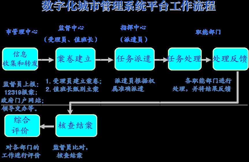 数字化城市管理系统的工作流程主要包括以上7个重要环节。