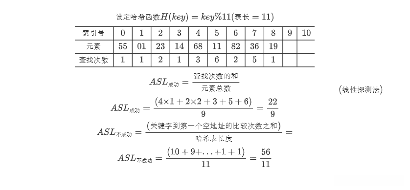 通常情况下,在评估哈希表性能时(即讨论ASL的情况下),我们假设所选择使用的哈希函数遵循均匀分布特性,并不考虑其相关因素的影响。因此,在这种设定下,哈希表的平均查找长度(ASL)主要取决于解决冲突策略和装载因子这两个关键参数。