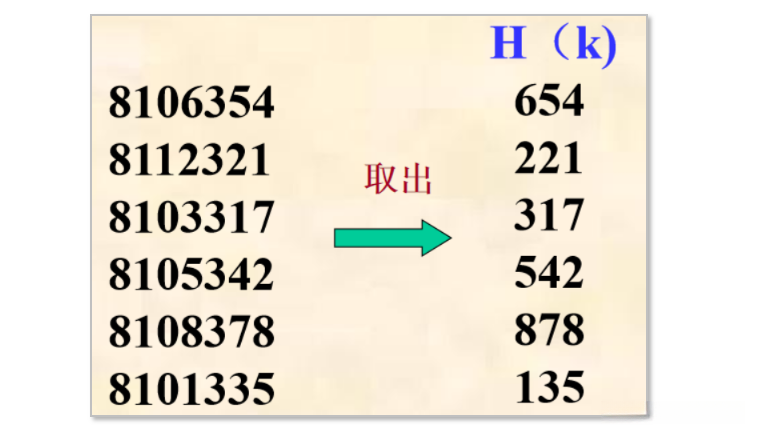 采用平方后的关键部分(取其中一部分)来作为存储地址。其中关键数据经平方后得到的部分的主要目的是为了增大差异程度。这些部分还能够反映整个数据各部分的信息。