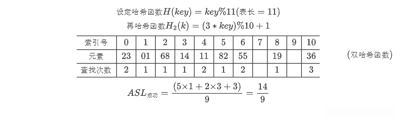 双哈希函数探测法:通过Hi=( H(key) + iRH(key) ) % m(i=1,2, ..., m-1)计算候选存储地址序列,在发生冲突时采用第二个哈希函数Hi=( H(key) + iRH(key) ) % m继续寻找可用空间。
