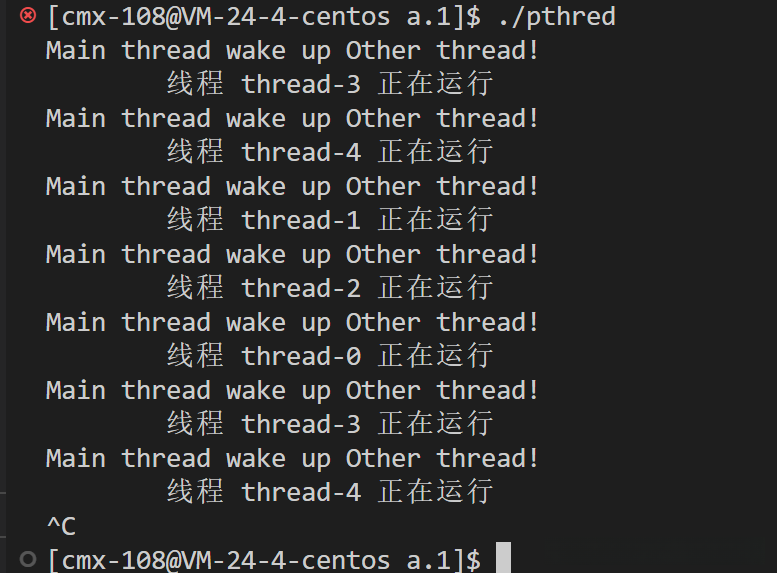 在条件变量中定义的线程必须被唤醒;否则将无法判断何时处理队头线程;可以通过 pthread_cond_signal 函数来实现其唤醒作用。