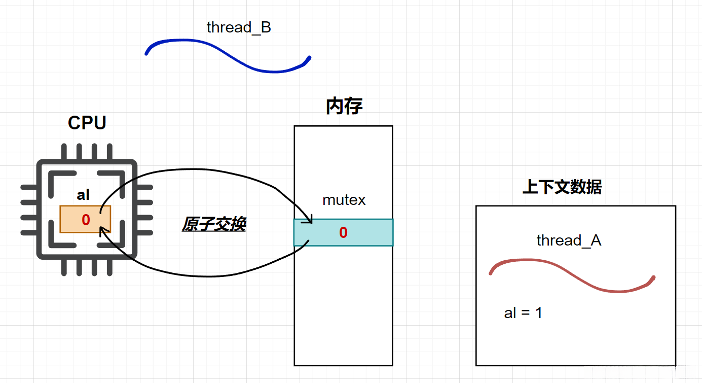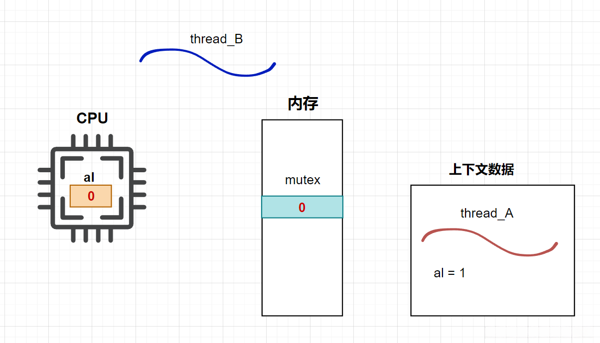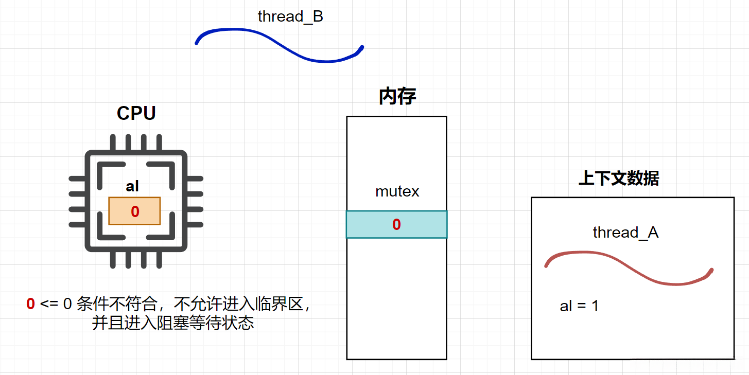 在单线程环境下,即便将步骤划分得极为细致也不会影响整体流程。然而,在我们当前所处的多线程操作环境中,则面临着 thread 调度冲突的问题。例如,在此情况下,默认情况下 thread_A 完成第2步后被强行替换为 thread_B 运行以解决冲突。