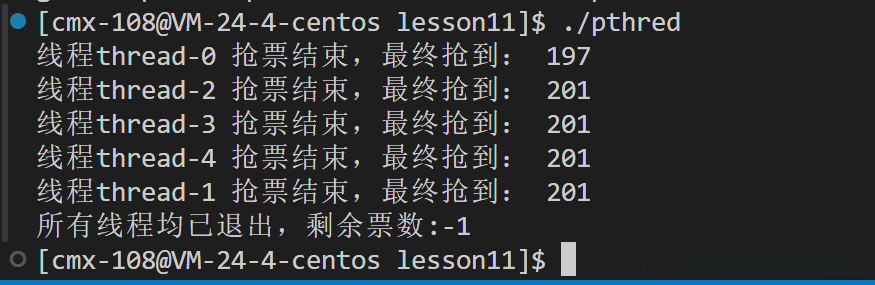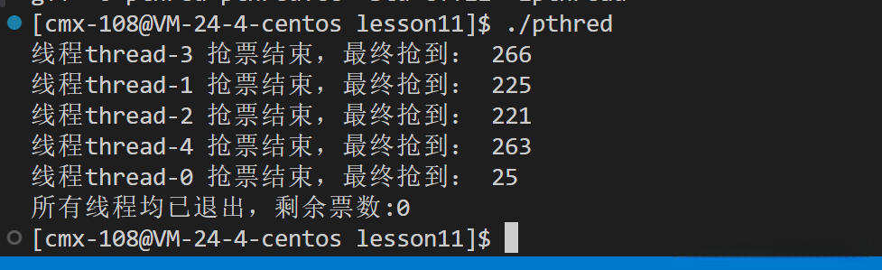 cout << "所有线程均已退出,剩余票数: " << tickets << endl;