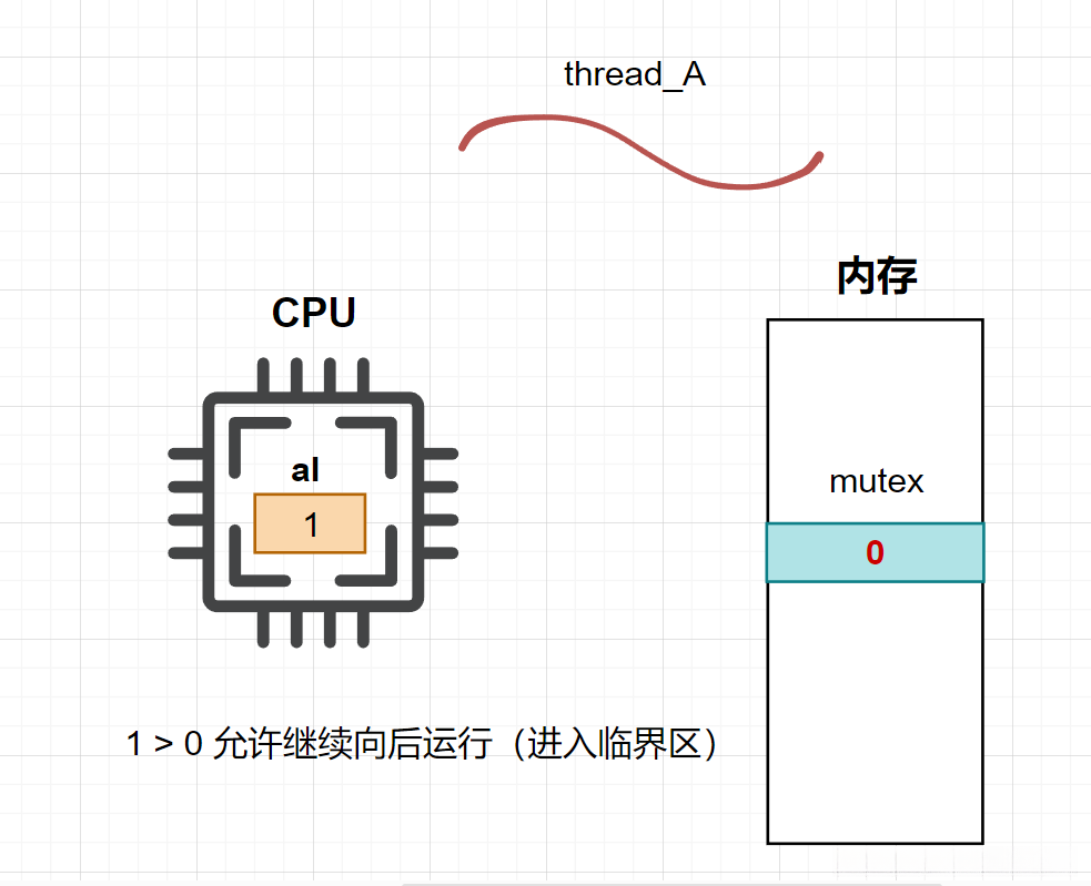 假设 g_val 初始值为 100,如果 thread_A 想要进行 g_val--,就必须这样做