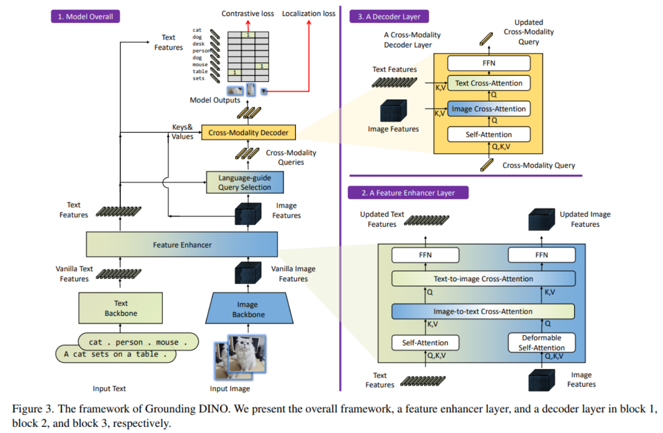 Grounding DINO基于其强大的预训练能力,并通过对比学习进行优化,以提升语言与目标域知识的有效对齐。