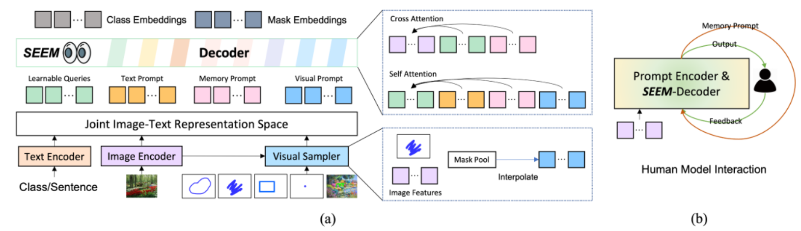 X-Decoder系统设计采用了多层次架构,在图像级、对象级以及像素级三个层级上运行,并结合先进的特征提取技术,在各层之间实现了信息的有效传递与协同作用。该系统基于Mask2Former架构,并通过多尺度的图像特征与两组特定查询实现分割掩码的解码过程。研究结果表明,在广泛的应用场景下,该方法能够充分展现了跨分割与视觉语言等多样化任务的可迁移性能