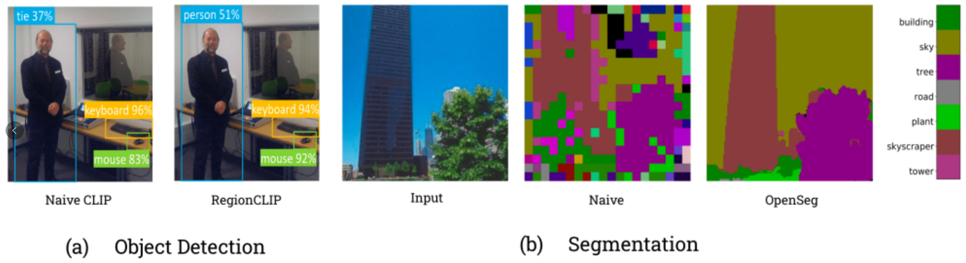上图展示了原始clip在视觉定位方面的专长,在语义分割这类像素级定位任务中尤其出色。